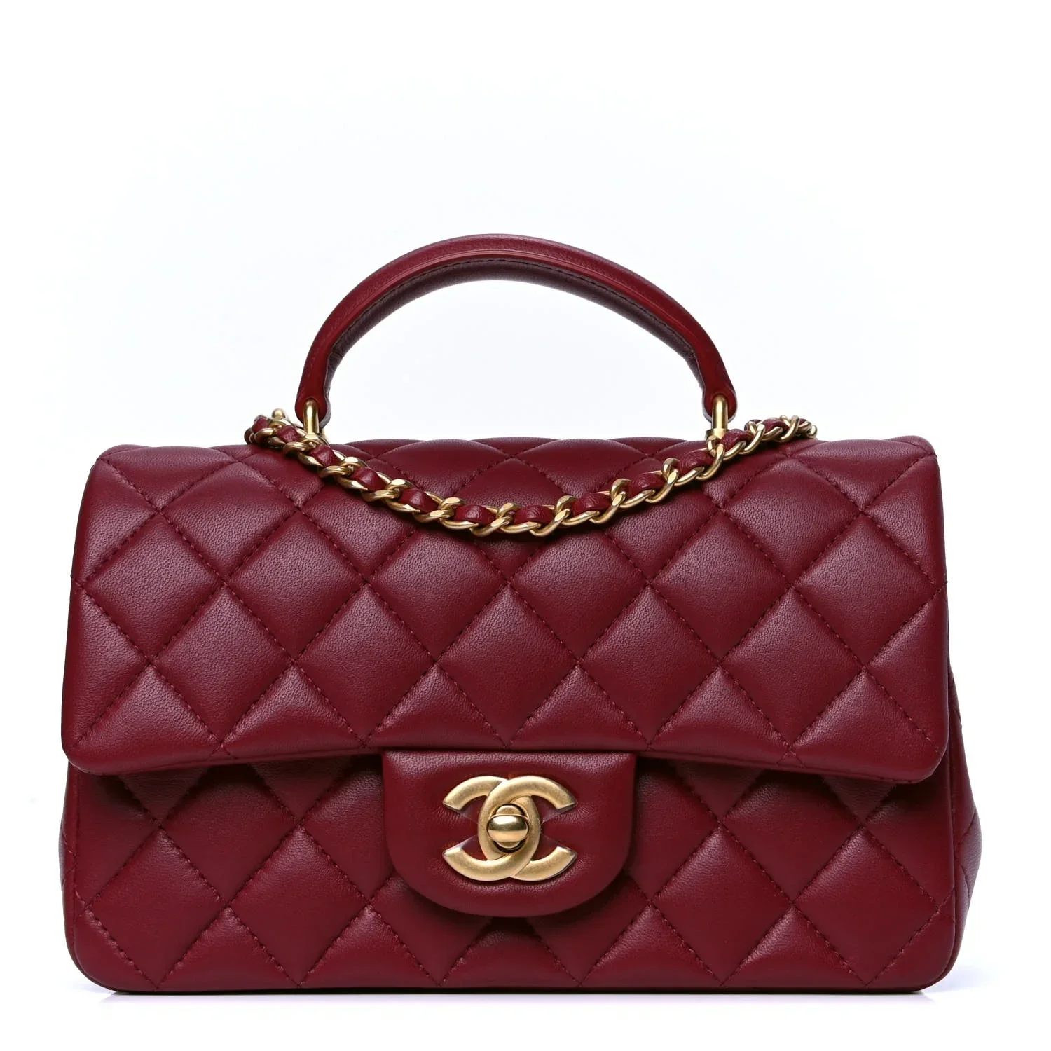 Chanel Lambskin Quilted Mini Top Handle Rectangular Flap Burgundy